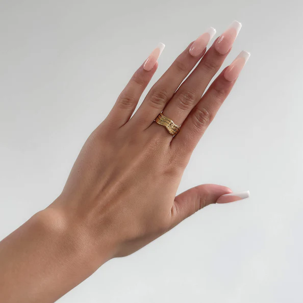 انگشتر طلای Esme ما برای استایل جسور و درشت مورد استفاده شماست. این حلقه باند موج سه گانه به خودی خود یک بیانیه برجسته ایجاد می کند یا به طور کامل در چینش حلقه ای جفت می شود. قصیده ای برای روزهای سپری شده در ساحل و در میان امواج غلتشی، طراحی غنی و بافت آن برای بالا بردن هر لباسی ایده آل است.