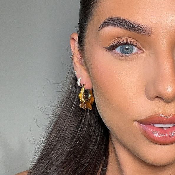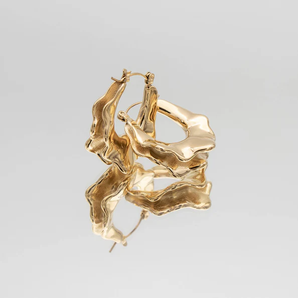 گوشواره حلقه ای طلایی روبا یک قطعه برجسته است که دارای طراحی برجسته برای بافت و استایل بیشتر است. این حلقههای سایز متوسط، یک پیچ و تاب مدرن با جزئیات مینی اسکران الهام گرفته از مرجان ارائه میدهند و ظاهری منحصر به فرد و چشم نواز ایجاد میکنند. ساخته شده از فولاد ضد زنگ با روکش طلا ۱۸ عیار، ترکیبی عالی از ظرافت و جسارت هستند.